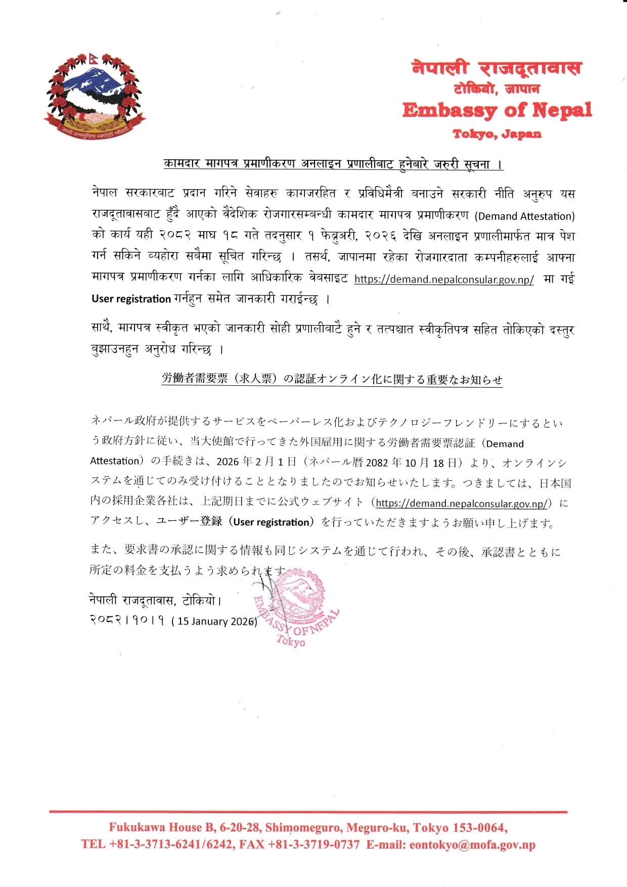 नेपाली राजदूतावास, टोकियो, जापानद्वारा SSW सम्बन्धी महत्वपूर्ण सूचना ।